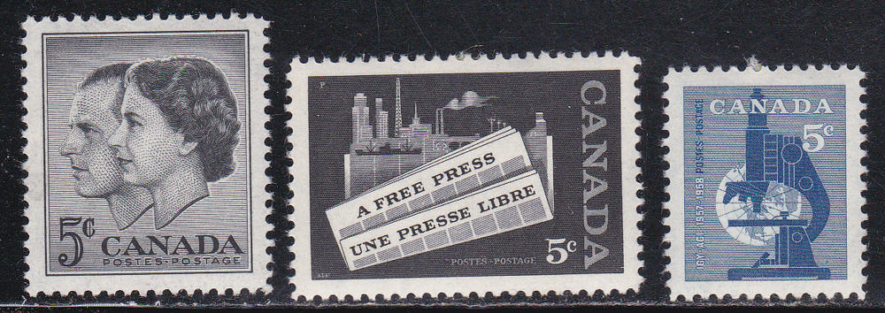 Canada # 374-376, Three Sets, LH, Third Cat