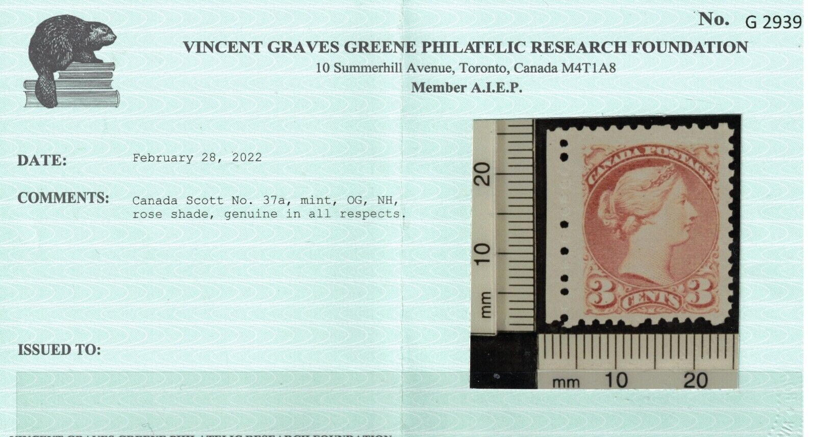 Grade: UngradedCanada #37a Very Fine Never Hinged Left Margin Example, Trifle Gum Disturbance Not Mentioned On Certificate, With Certificate. CANADIAN RESIDENTS WILL BE CHARGED APPROPRIATE TAXES FOR THEIR PROVINCE. Shipping Information: Please Add U.S.$2.50 for shipping and handling to USA & Canada. U.S. $3.50 for International orders and U.S.$0.50 for each additional lot. For Oversized Lots (i.e.: Sheets, Large Covers, Etc.) Please Add U.S.$6.00 for shipping and handling to USA & Canada. U.S. $7.00 for International orders and U.S.$0.25 for each additional lot (U.S.$1.00 For Each Additional Oversized Lot). Registered Mail Costs An Additional U.S. $9.00 To Canadian Addresses And An Additional U.S. $13.00 For U.S.A. Or International Addresses. CANADIAN RESIDENTS WILL BE CHARGED APPROPRIATE TAXES FOR THEIR PROVINCE. Payment Instructions: City Stamp Accepts Visa, MasterCard & PayPal. We Accept Canadian Currency At The Current Exchange. .