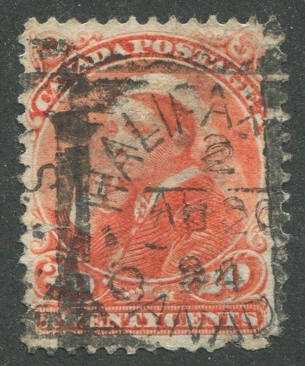 CANADA #46 Small Queen Issue 20¢ vermilion Used Squared Circle Cancel "Halifax" AU 20, 94 *Thin* Powered by SixBit's eCommerce Solution