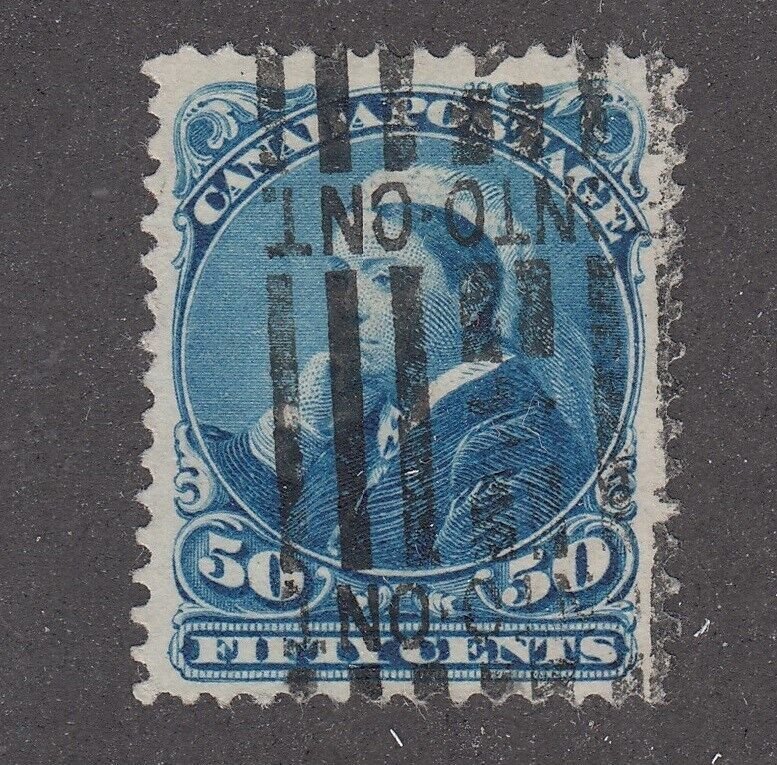 Grade: F (Fine)CANADA SMALL QUEEN ISSUE #4750¢ deep blue USED F Powered by SixBit's eCommerce Solution