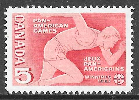 Single, 1967 5th Pan American Games, Winnipeg issue, MNH, VF. The stamp pictured is the one that you will receive.