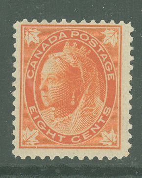 PSE Cert. 01439809. Dated 5.6.2024. Scott 72. 1897 8c Queen Victoria Orange. Grade: F 70. It is genuine unused, o. g., never hinged.APS Stamp Id: 501915746