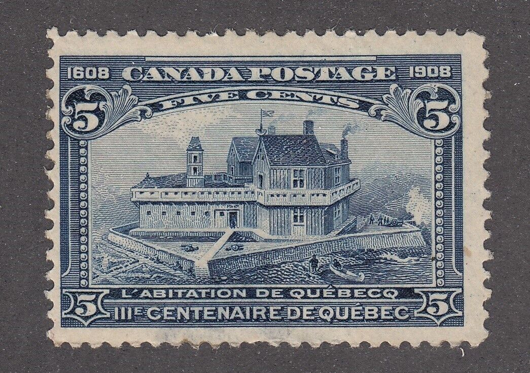Canada Quebec Tercentenary Issue #99 Champlain's Habitation 5¢ blue Mint F Og *Bad Thin* Powered by SixBit's eCommerce Solution