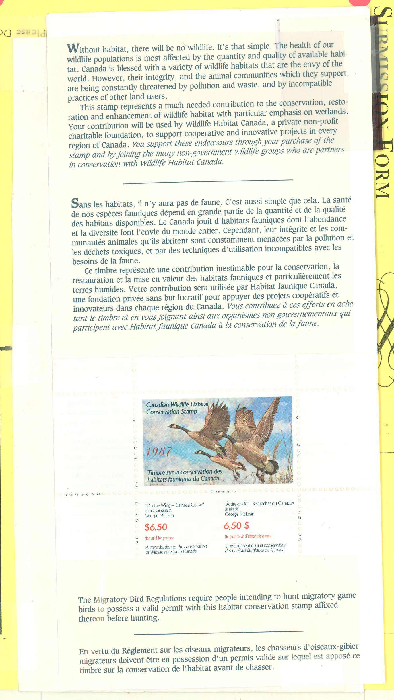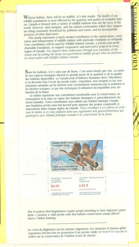 1987 $6.50 Wildlife Habitat Conservation Booklet & Stamp. APS Stamp Id: 501977607 APS Seller Id: 508479 Hinge Type: NH