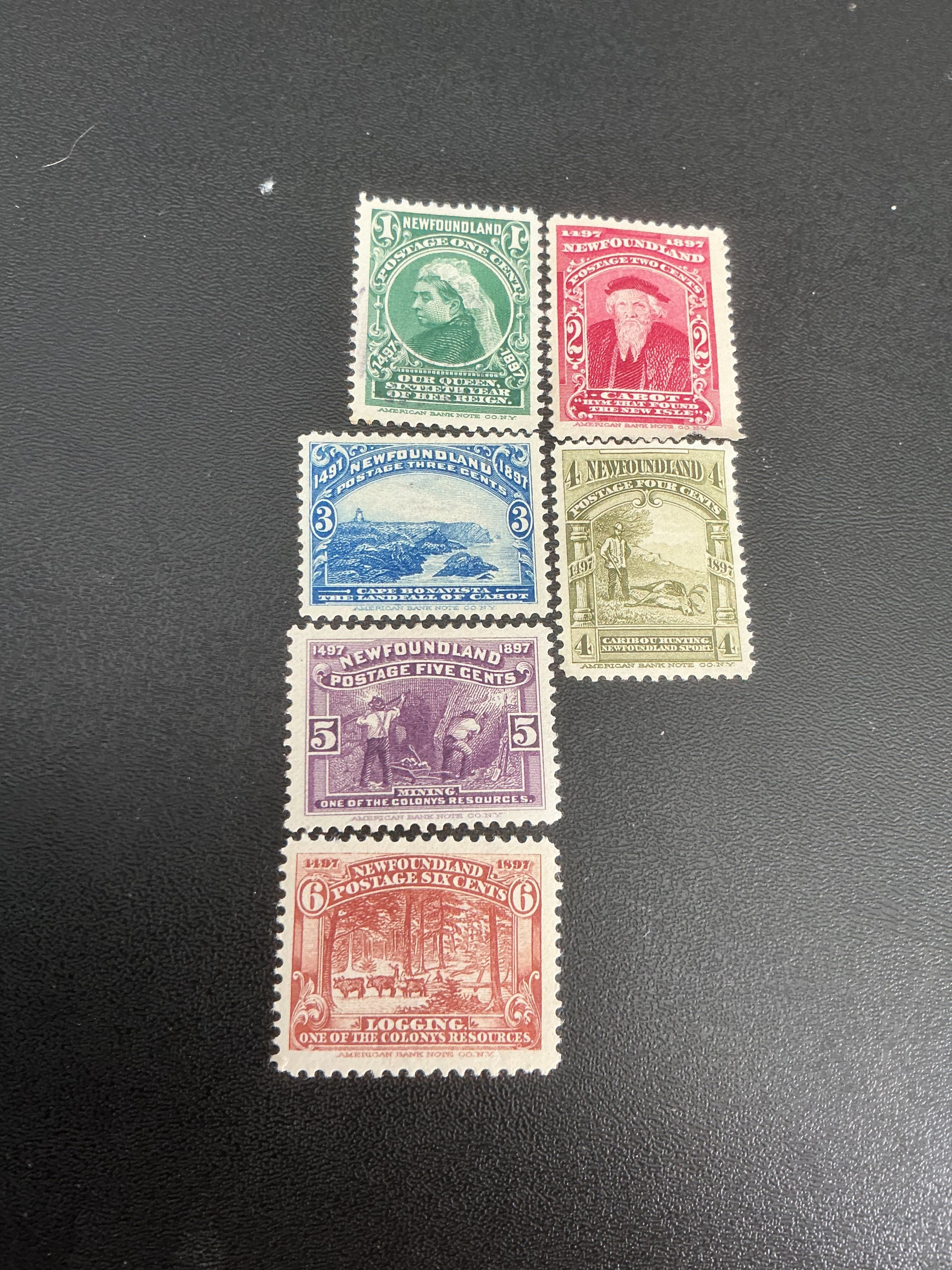 Very nice from Newfoundland. Slight nick from Perf on 62. Mint with light hinge marks. Nice color and graphics. Scott catalogue value is $29.85.