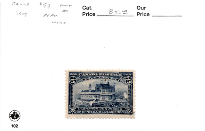 Canada, Postage Stamp, #99 Mint Hinged, 1908 Champlain Home (AG)