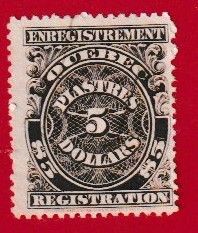 CANADA QUEBEC 1912 $5 REGISTRATION - USEDSeller Information