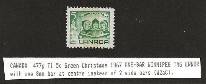 CANADA SC# 477p W2aC TAG ERROR 8mm@ CENTER FVF/MNH