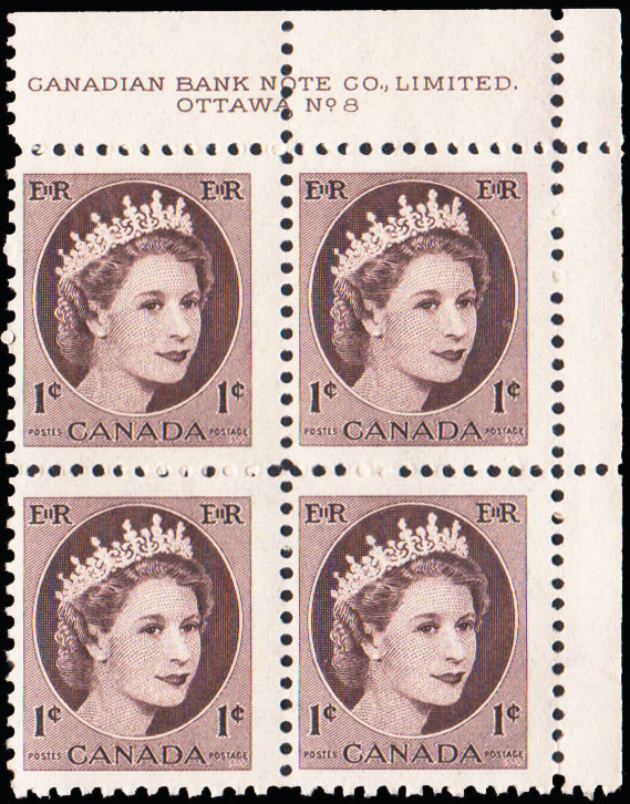 1c QEII Wilding Plate Number 8 Block Upper Right. Mint never hinged.Seller Information