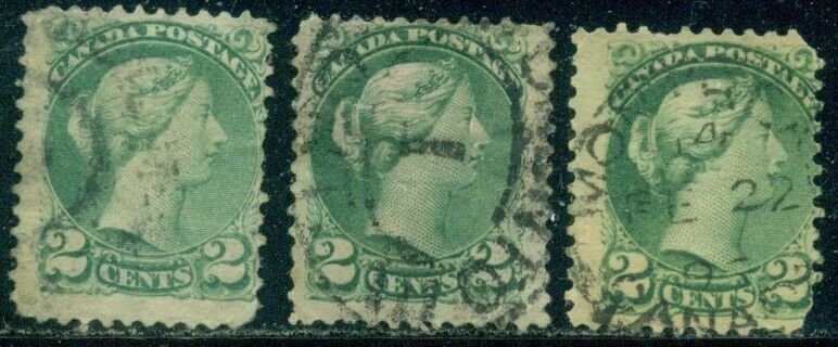 CANADA SCOTT # 36, USED, VERY GOOD, 3 STAMPS, GREAT PRICE!