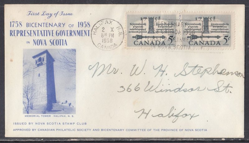 Canada Scott 382 Pair FDC - Representative Government