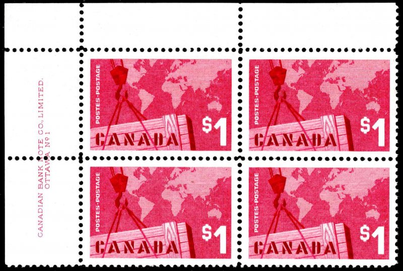 $1 Canadian Exports Plate No. 1 Upper Left. Mint never hinged.