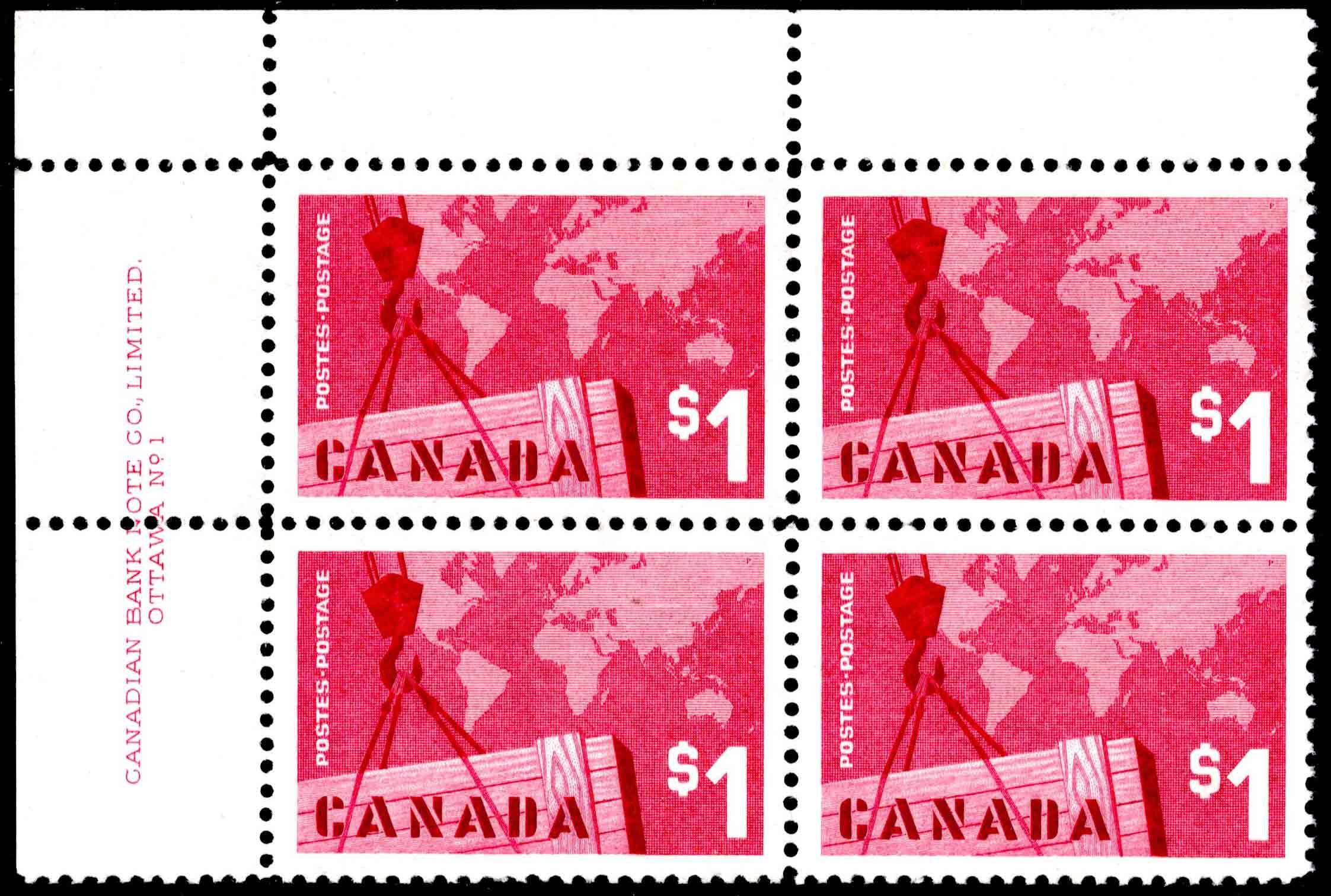 $1 Canadian Exports Plate No. 1 Upper Left. Mint never hinged.Seller Information