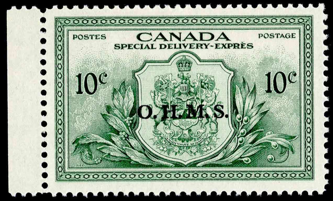 10c Arms of Canada Special Delivery Peace Issue Overprinted O.H.M.S. Mint never hinged.Seller Information