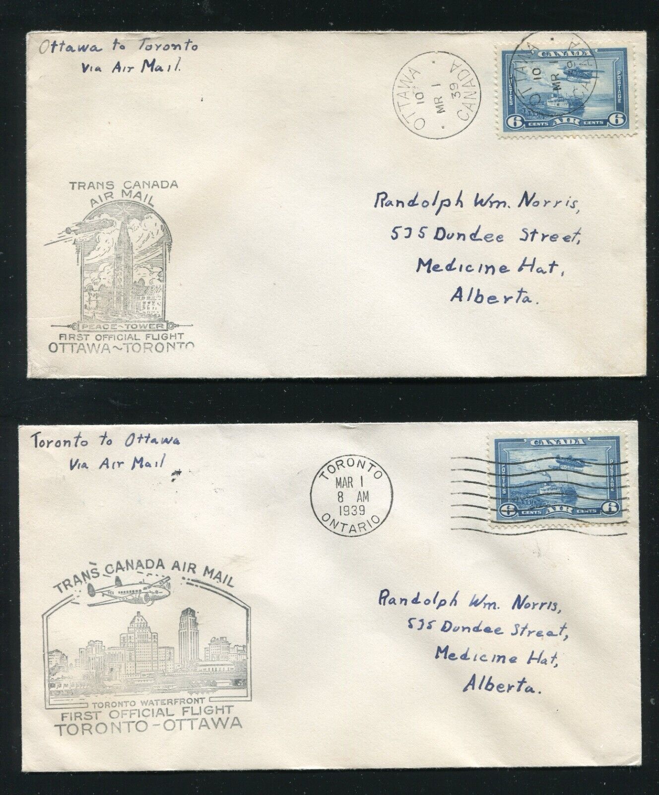 Canada Toronto - Ottawa First Flight Covers 1939