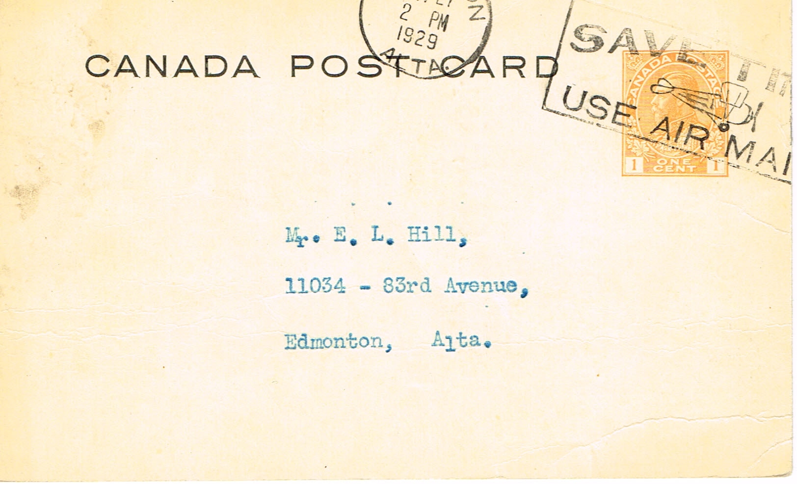 Webb P29d. Preprinted front and back. Stains and creases. Nice cancel.