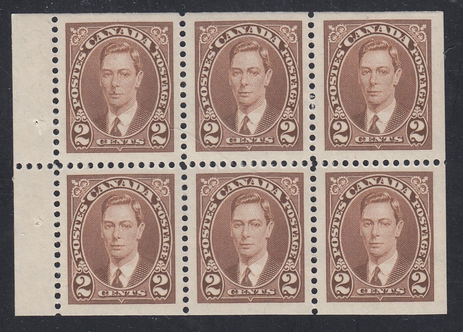 Grade: VF (Very Fine) CANADA KING GEORGE VI MUFTI ISSUE #232b booklet pane of 6 x 2¢ brown MINT VF NH Powered by SixBit's eCommerce Solution