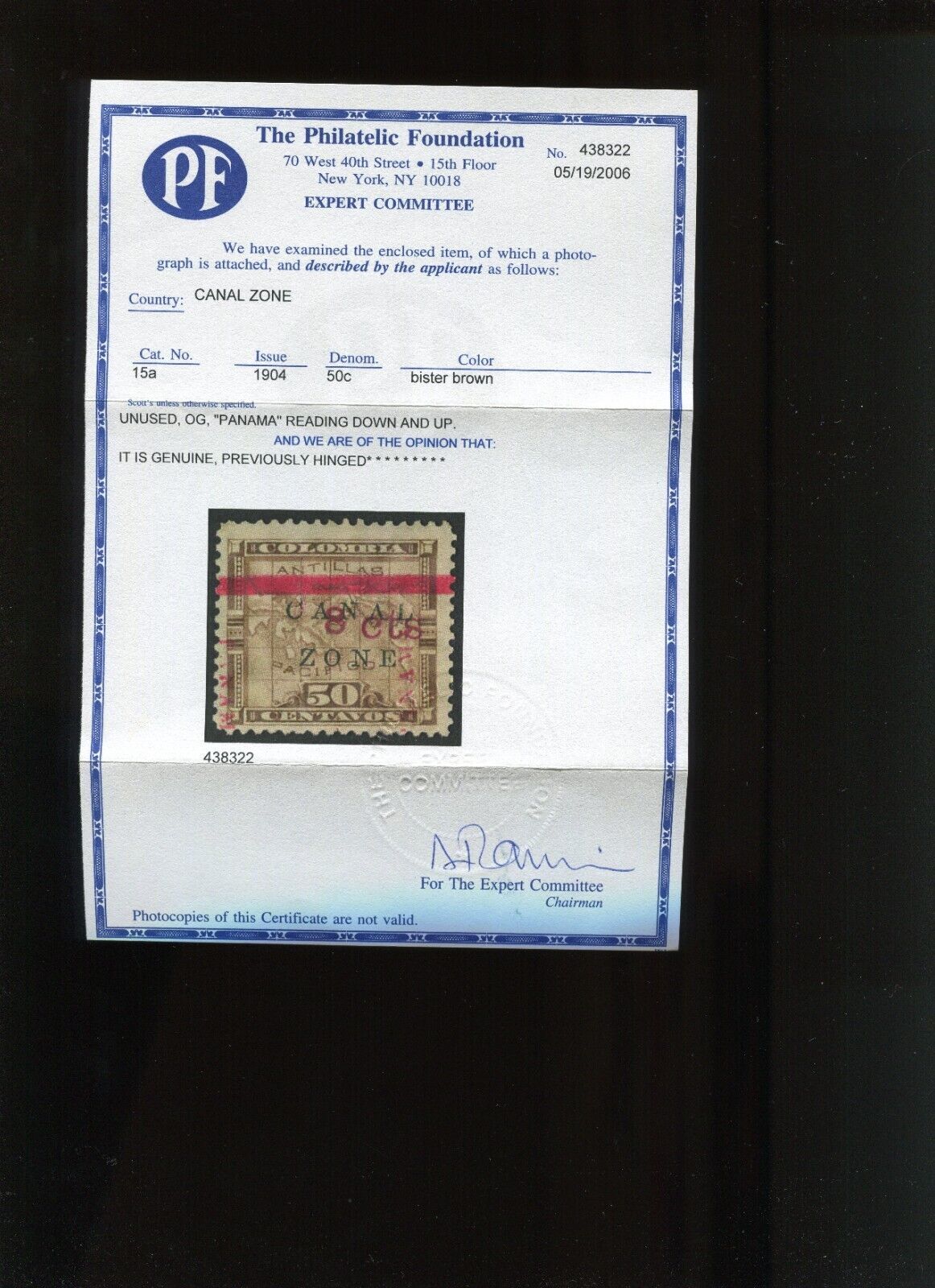 Canal Zone 15a Overprint Reading Down/Up Var. Mint Stamp with PF Cert (Bz 1036)