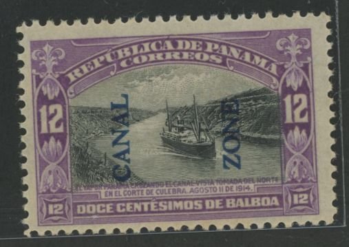 1917 12c SS Panama in Culebra cut, purple & black (Panama 214 w CZ OP type II, blue), awesome color combo & sense of depth, healthy margins; glossy gum (OGHR); SCV: 17.50APS Stamp Id: 501780655