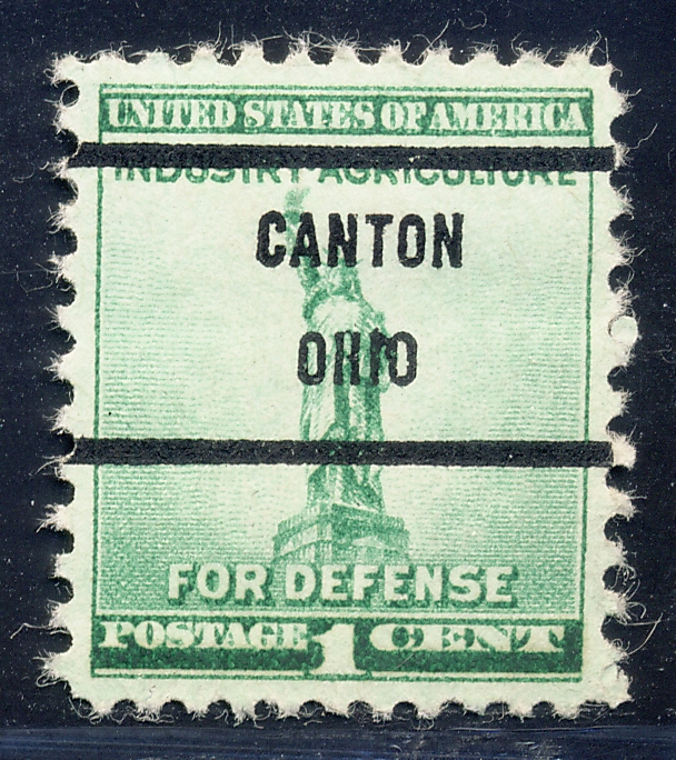 Canton Ohio, 899-71 Bureau Precancel, 1¢ National Defense, Used, No Gum, Undated.NOTE: Item pictured is an example of the stamp you will receive but not the exact copy. If you aren't satisfied with the copy you receive you may return it at your cost for a refund.