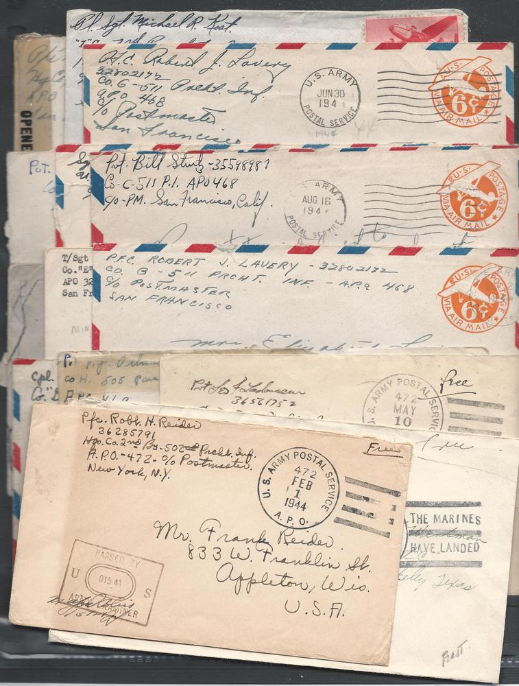 Censored Cover Collection, U.S.A., Thirty-four covers from var A.P.O.'s, six only have the Censor's signature, the rest possess both the signature and the h/s, several w/their origianl content, mostly VFSeller Information