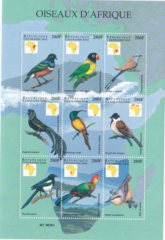 Central Africa # 1235-1236 & 1237-1238, Birds of Africa, NH, 1/2 Cat.
