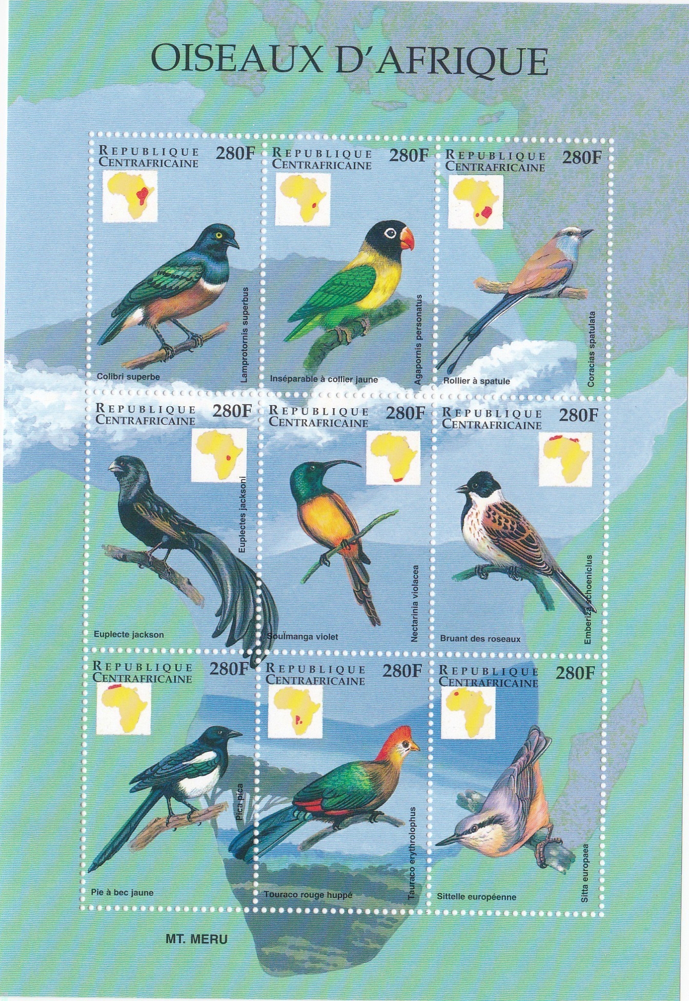 Central Africa: Scott catalogue # 1235-1236, Two sheets of 9 stamps and # 1237-1238, two souvenir sheets, mint never hinged. Scott catalogue value is $ 38.20. Selling at 1/2 of catalogue value.