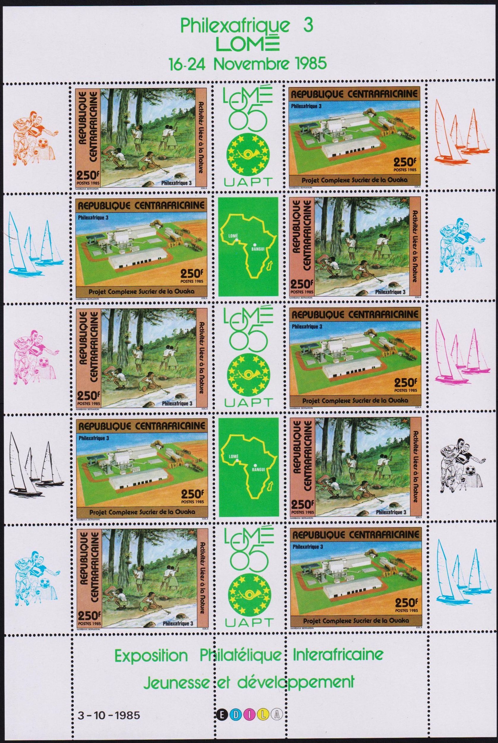 Central African Republic 1985 PHILEXAFRIQUE Nature Mushrooms Mi.1171-2 Sheet MNH
