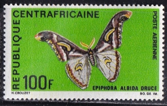 Central African Republic C70 (mhr) 100fr moth: Epiphora albida (1969)