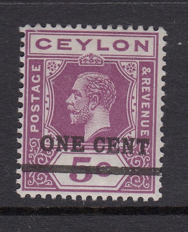 Ceylon 1918 One Cent on 5c