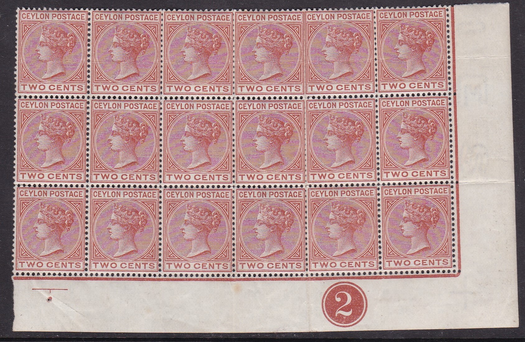 block of 18 Wmk 2 slight crease on perf lines
