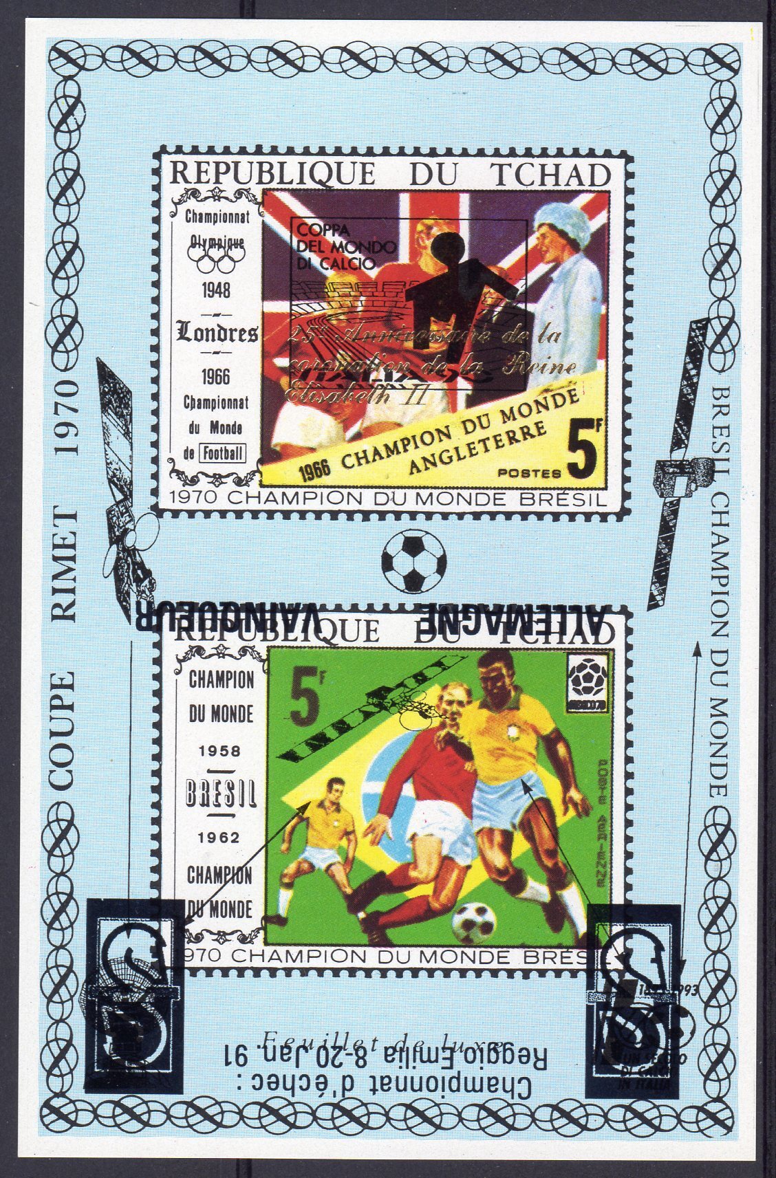 Chad 1991 World Cup Italy 1990/Germany Winner/CHESS Italy INVERTED OVERPRINTED