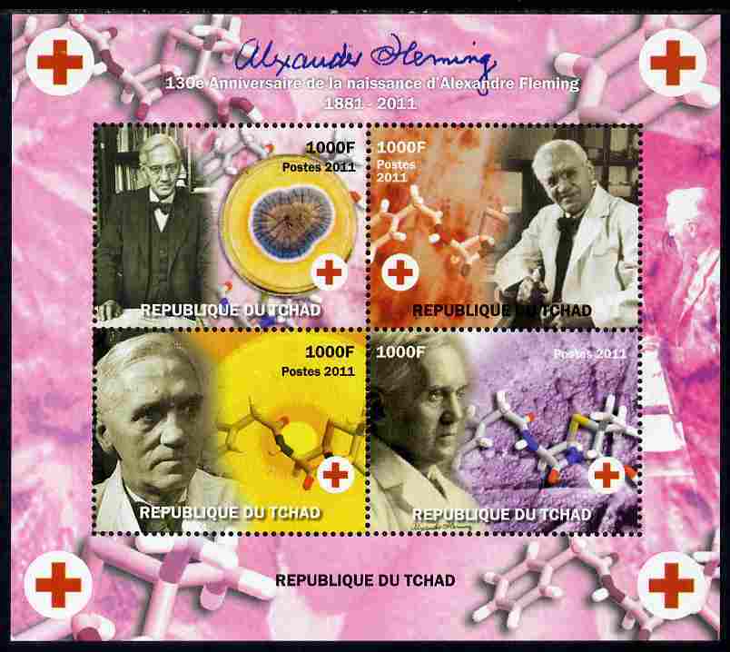 CHAD -2011 - Alexander Fleming, 130th Birth Anniv - Perf 4v Sheet - Mint Never HingedNote this item is privately produced and is offered purely on its thematic appeal, it has no postal validity