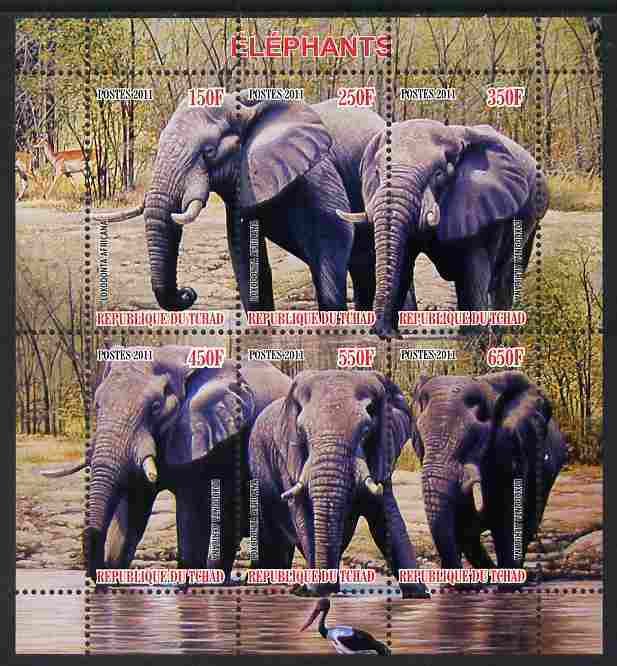 CHAD -2011 - Elephants - Perf 6v Sheet - Mint Never HingedNote this item is privately produced and is offered purely on its thematic appeal, it has no postal validity