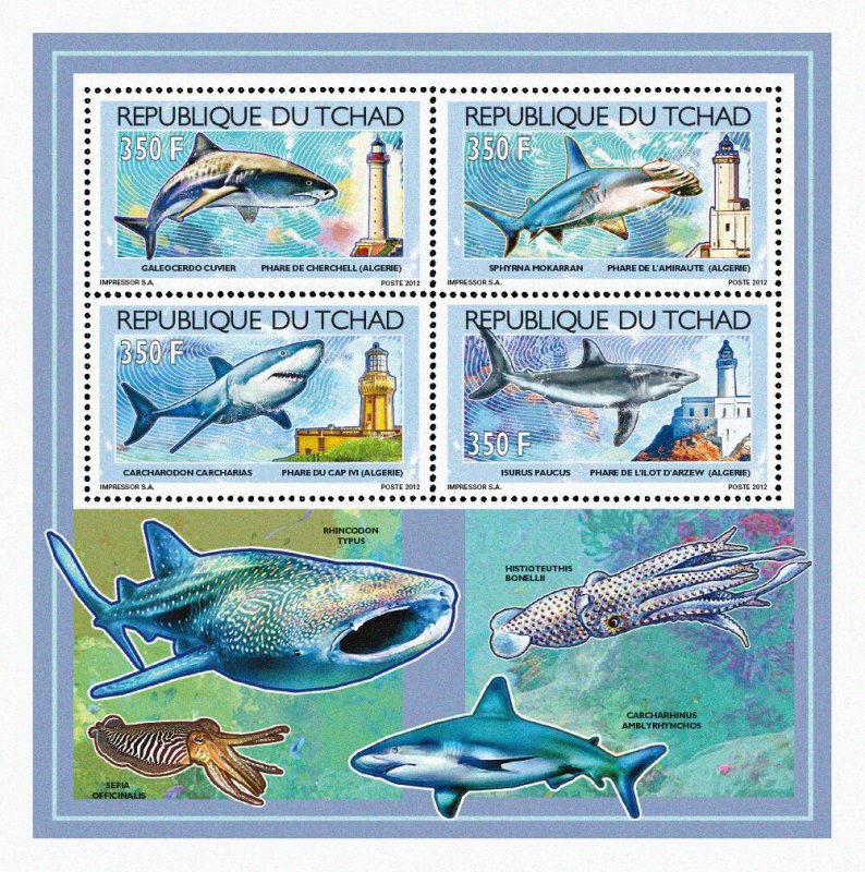 Chad 2012 Imperf. Sharks & Lighthouses Full No. 2539 A- 2542 A - BL. 423 - 426-