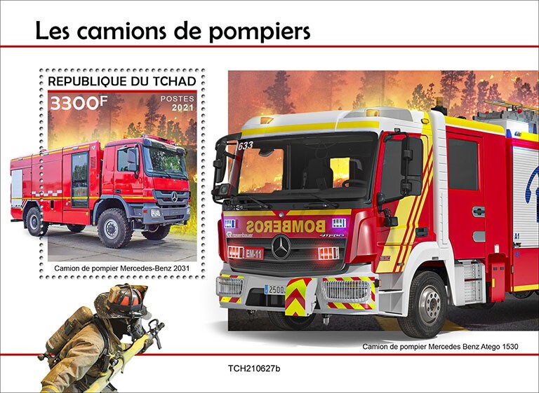 CHAD - 2021 - Fire Engines - Perf Souv Sheet - Mint Never HingedSeller Information