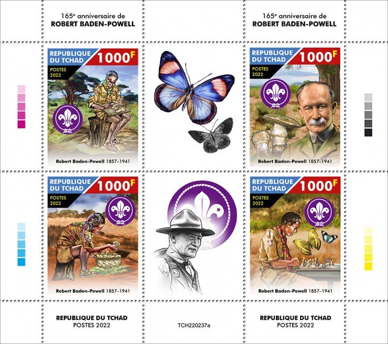 CHAD - 2022 - Robert Baden-Powell, 165th Birth Anniv - Perf 4v Sheet - Mint Never HingedSeller Information