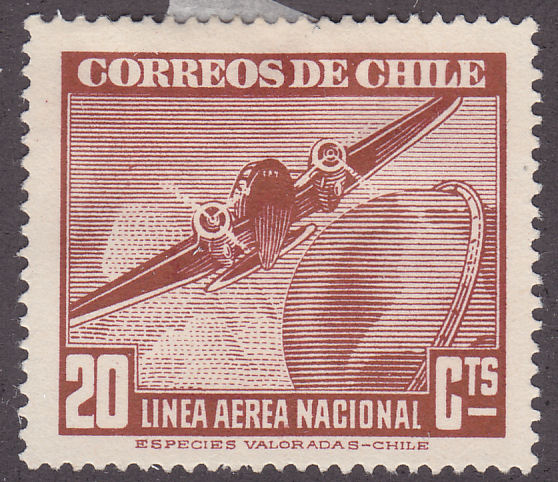 Hinged Stamp, Chile C72 Plane & Globe 1943