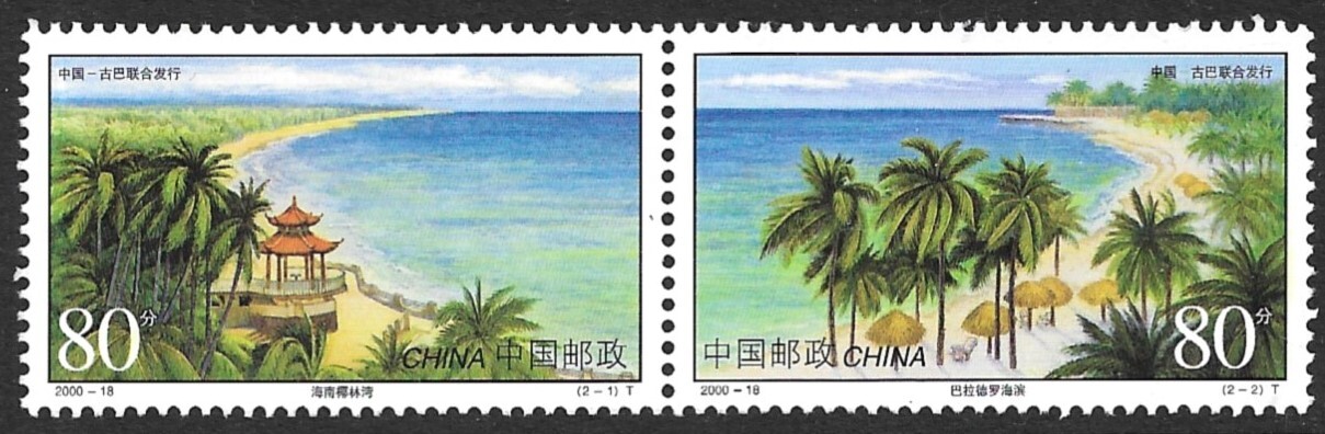 CHINA PRC - 2000 Complete China and Cuba Beaches Set of 2 as Horizontal Se-tenant Pair Scott No. 3052 Fresh Mint OG (NH).Seller Information
