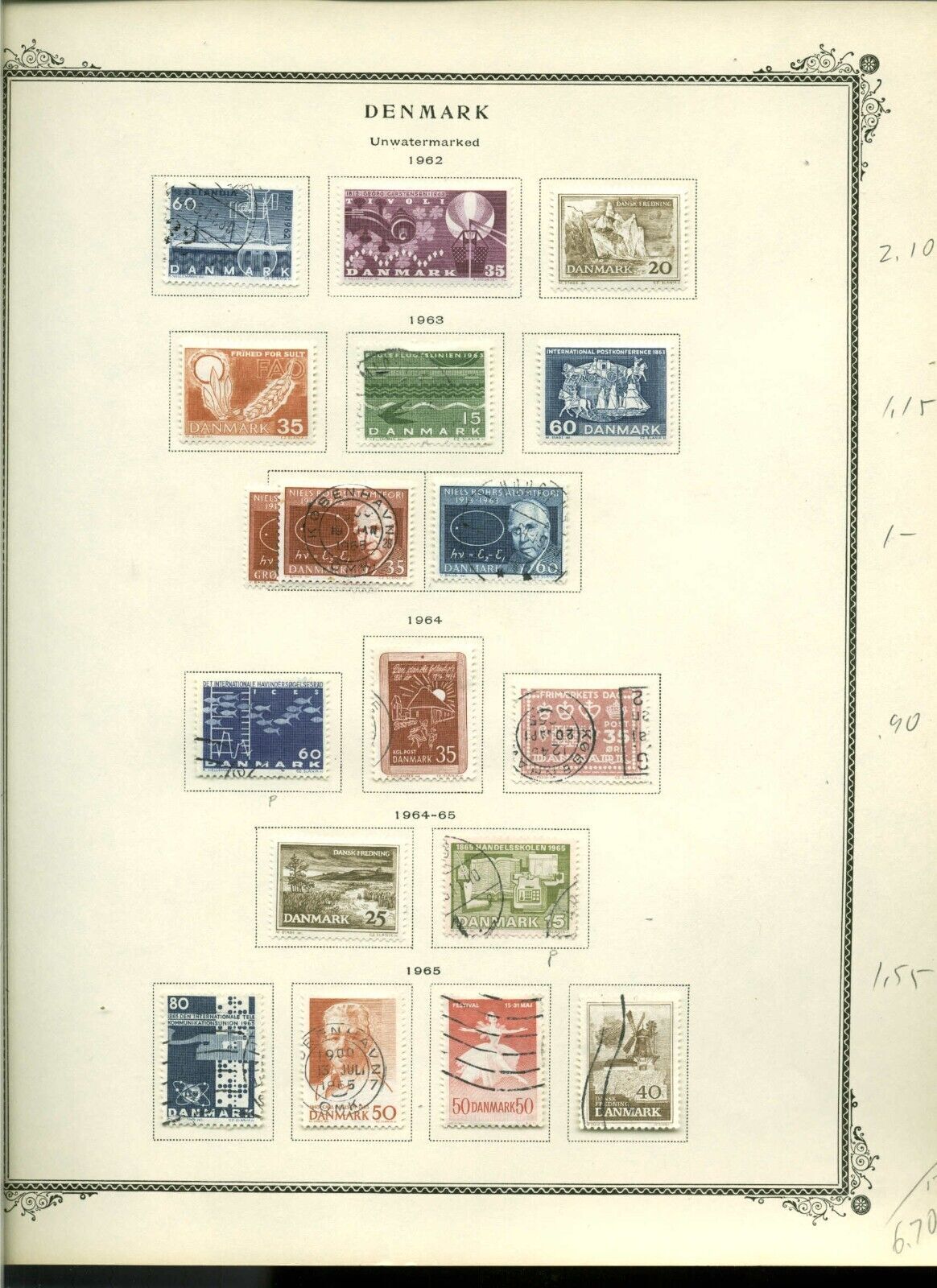 Collection, Denmark Part F Scott Album Pages, 1875/1970 Cat $198, Mint & Used