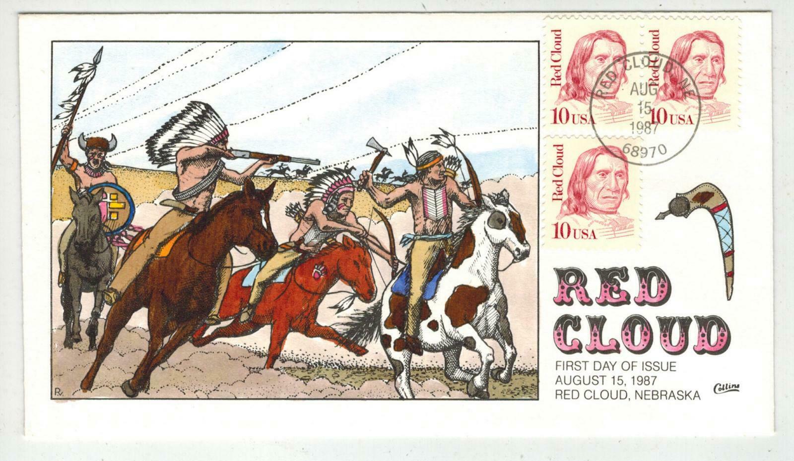 COLLINS GORGEOUS HANPDAINTED FDC 2175 RED CLOUD American Indian Nebraska