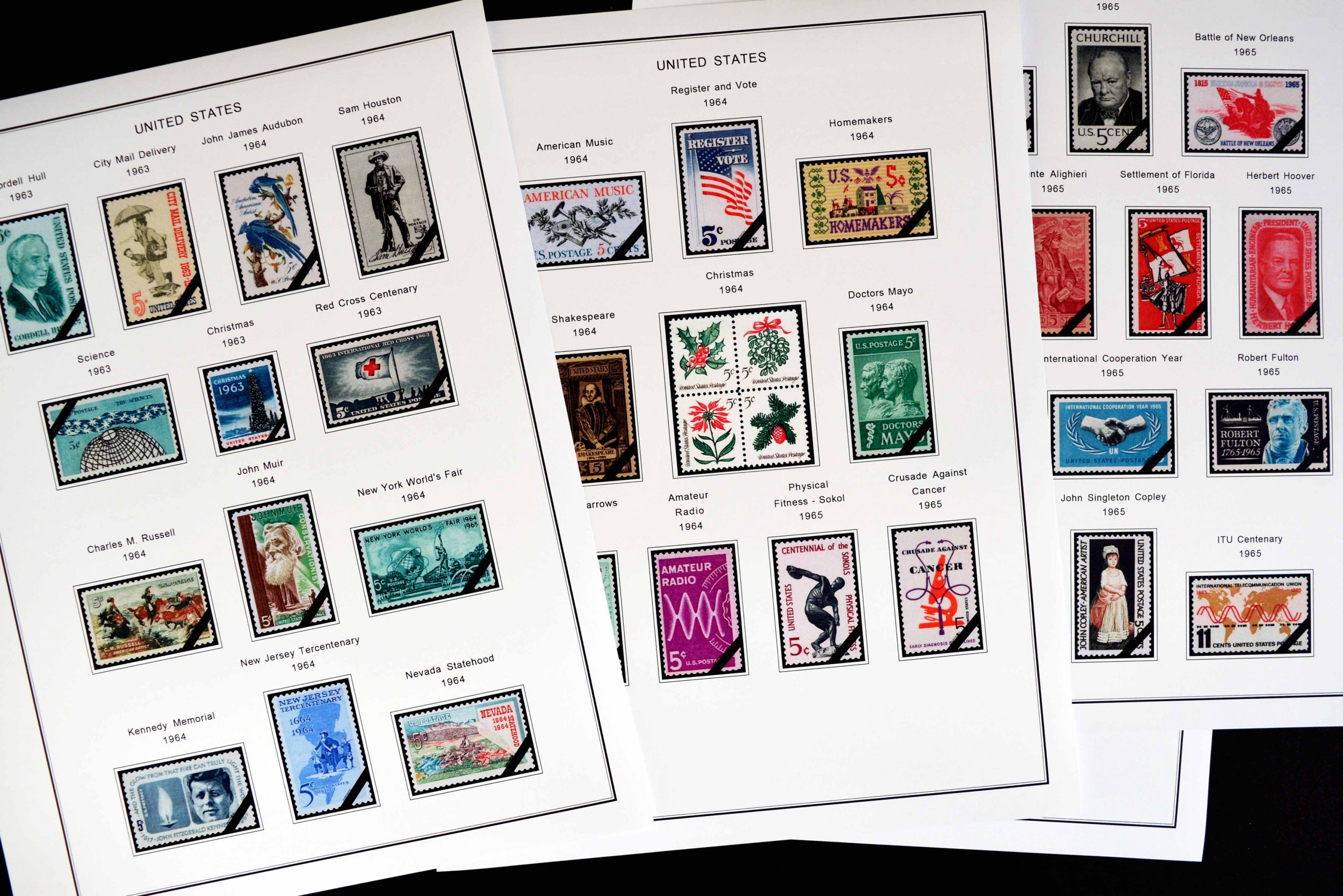 Full color printed pages for united states of america 1920-1965. The stamps are ordered according to scott catalogue _(for copyright reasons, scott numbering isn´t displayed in the pages)_.