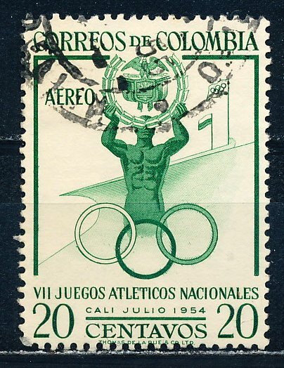 Stadium and Athlete Holding Arms of ColombiaSeller Information