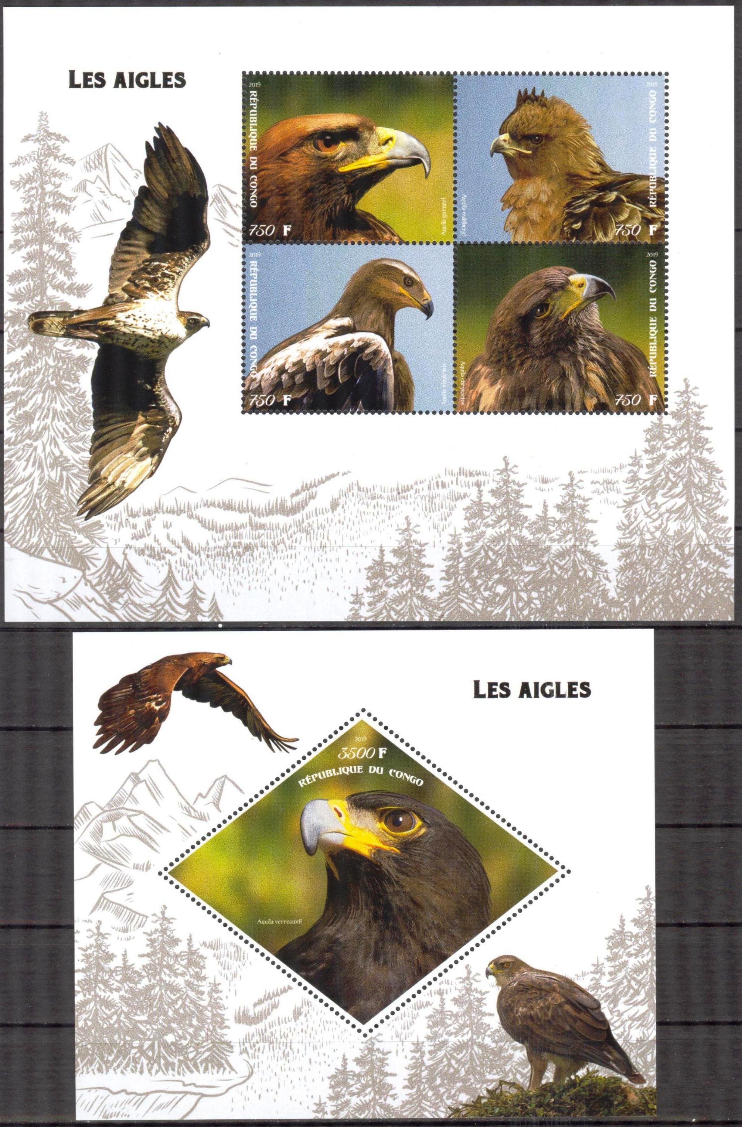 Congo 2019 Birds Eagles 2 S/S MNH
