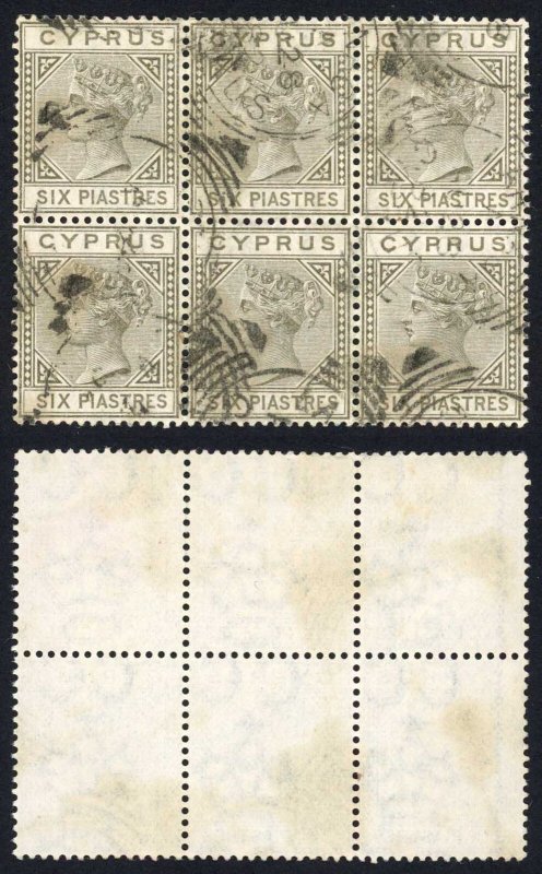 Cyprus SG15 1881 6pi olive-grey Wmk CC BLOCK of SIX EXCEEDINGLY RARE Cat 3300+++