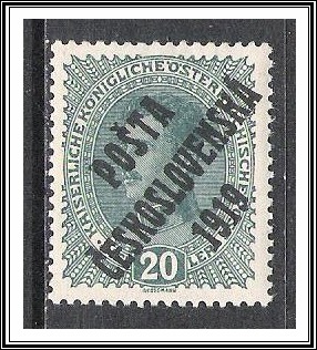 Country: Czechoslovakia Year: 1919 Catalogue #: B8 Description: 20h Dark Green Condition: Mint, Hinged Keywords/Remarks: Order $25.00 or more and Shipping is FREE! Under $25.00 just one flat fee per ... Read More