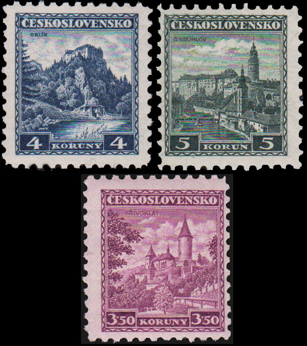 3.5K Krivoklat Castle, 4K Orlik Castle and 5K Krumlov Castle. Mint never hinged.