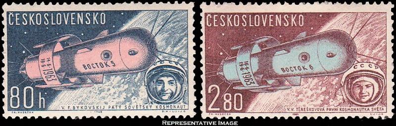 80h Space Flights of Valeri Bykovski Valentina and 2.8K First Woman Astronaut Woman Tereshkova. Mint never hinged.