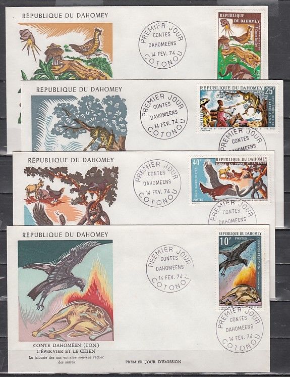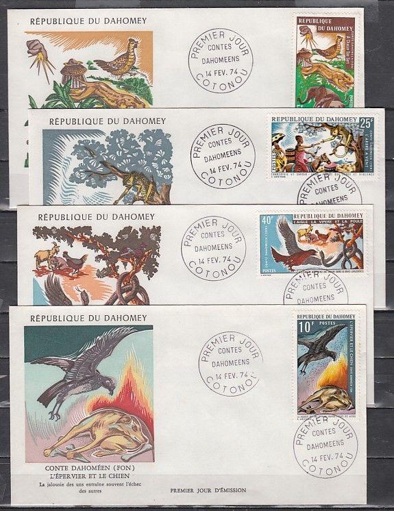 Condition: First day cover. Dahomey, Scott cat. 317-320. Folktales issue. 4 First day covers.Powered by Hip Turbo Lister