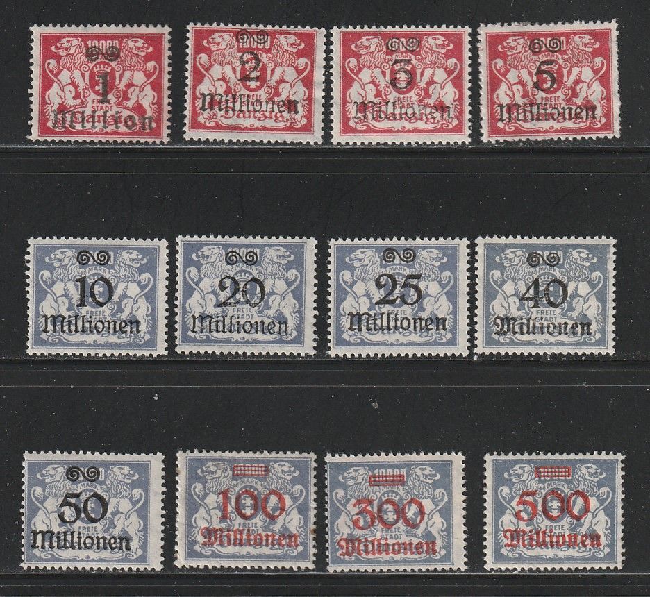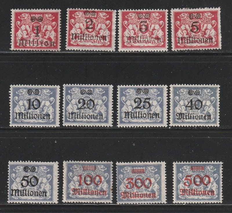 Danzig 144-155 Complete Set Mint Hinged, Surcharges